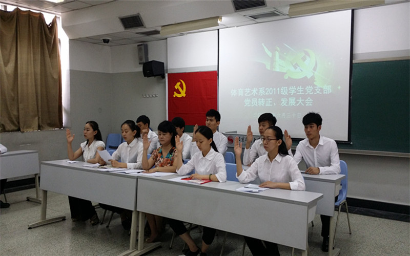 6月30日上午7:00,艺术系2011级党支部在支部书记张丽芬老师的带领下,于教学楼102教室召开党员发展、转正大会。会议由支部委员崔特特主持召开,参加会议的还有2011级党支部正式党员9名、预备党员10名、发展预备党员5名和入党积极分子。