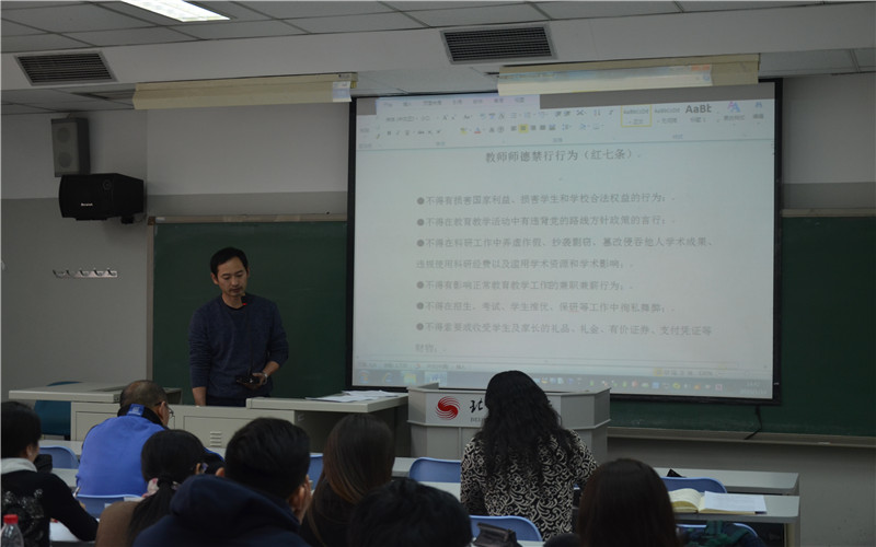 会议由系党总支副书记谢谦组织全系教师共同学习了《高等学校教师职业道德规范》、《教师师德禁行行为》、《教育部关于建立健全高校师德建设长效机制的意见》等相关内容,并要求全系教师进一步学习《6776永利集团师德建设工作实施办法》,提出修改意见。最后,体育艺术系马鸿韬主任在总结中对学校关于师德建设工作相关要求再次进行了强调,也对大家一学期以来的工作进行了鼓励与肯定,并希望全系教师总结过去,展望未来,在新的一年里,加倍努力,再创新高。