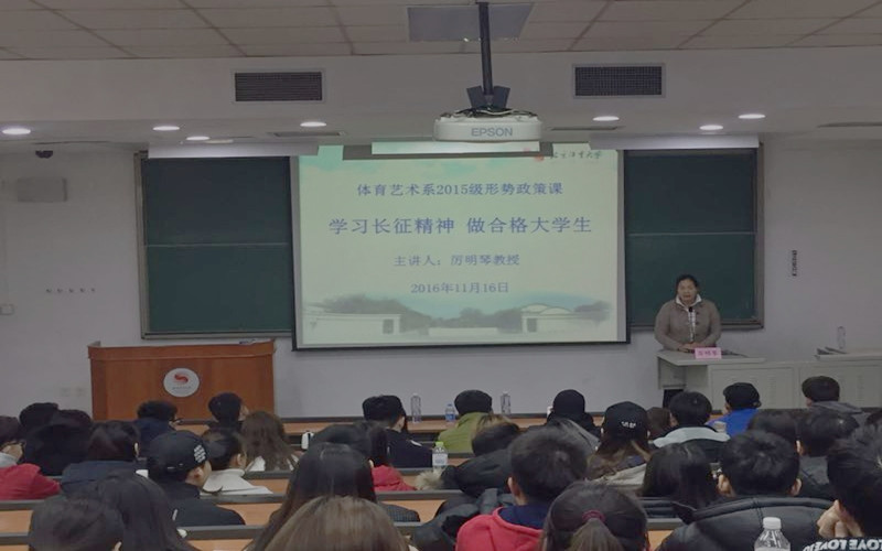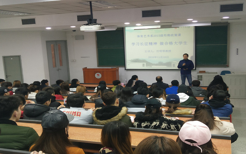 为纪念长征胜利80周年,弘扬伟大长征精神。2016年11月16日上午10时形势与政策课,我系2015级在教学楼314开展纪念长征胜利八十周年主题教育活动。本次讲座邀请到校老干部处关心下一代委员会厉明琴教授主讲。系党总支副书记谢谦老师、副主任许寿生老师参加活动,辅导员张丽芬老师主持。