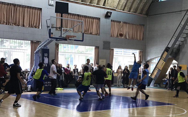 赛场上,由教师“young man”队分别对阵研究生“艺术先锋”队、大三的“艺战群雄”队、大二的“15allstars”、大一的“活力四射”队等四支队伍。比赛对抗十分激烈,教师队进攻犀利,配合默契,员工队也不甘示弱,奋力直追,同学们的加油呐喊声也是此起彼伏,现场气氛十分热烈。运动员们闪电般的速度,准确的抢断,犀利的突破,花式的运球动作一次又一次引爆现场的气氛,全场欢呼声一浪高过一浪,两队比分甚是焦灼,交替领先,在最后一节还剩10秒之际,两队比分59:59,但最后教师队技高一筹,通过配合,绝杀比赛,最终以61:59取胜。