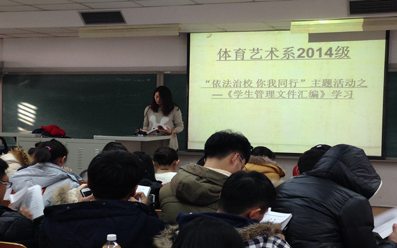 临近期末,为进一步增强老员工遵守校规校纪的意识,维护良好的教学秩序和生活秩序 。2014年12月10日上午10:00,我系2014级全体同学利用形式政策课的时间,在教学楼514教室开展了此次“依法治校,你我同行”主题活动之《员工管理文件汇编》学习。