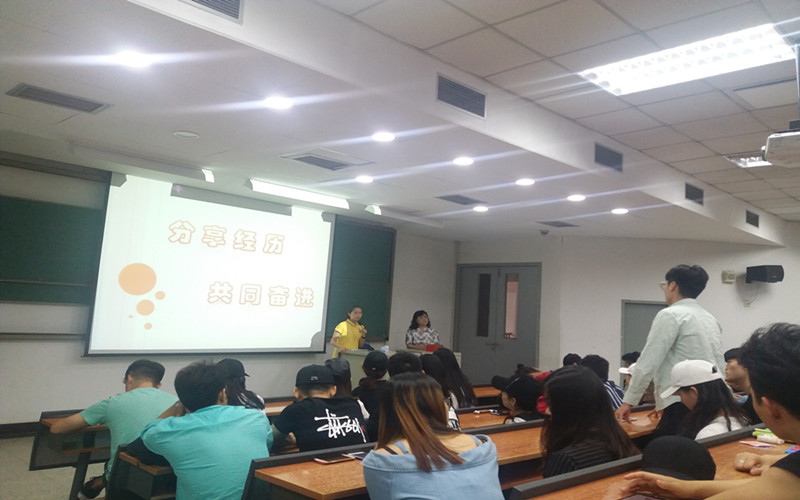 在活动中,王梦晨为同学们讲述了在美国八个多月的学习以及生活体验,分享了在此期间收获的学习成果和感悟。同学们认真聆听,根据自己的问题和感触踊跃发言。最后,王梦晨强调了学好英语和做好人生规划的重要性,鼓励大家珍惜时间,切勿荒废大学时光。