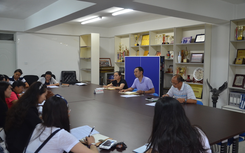 2015年9月9日下午5点 在教研楼310会议室召开了体育艺术系新学期工作部署暨教师节座谈会,系党总支副书记谢谦、副主任许寿生、以及各教研室主任、副主任、支部书记和各年级辅导员参加了此次会议,办公室主任吴梦晗主持会议。