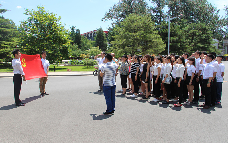 大会结束后,全体员工党员齐聚到毛主席像前,在系党总支副书记谢谦主持下,总支宣传委员栾波带领党员面对党旗重温入党誓词。大家怀着庄严的心情,面向鲜红的党旗,一字一句的重述入党誓词,每一句承诺,既回响在党员的耳边,更深深地铭刻在党员的心中。