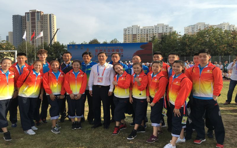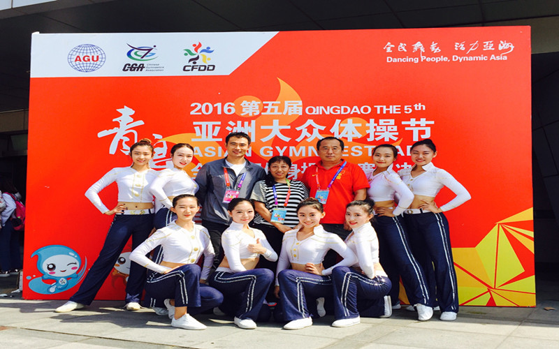 在9月25日结束的为期一周的青岛2016亚洲大众体操节暨第五届全国全民健身操舞大赛总决赛上,我系三支队伍40名员工在团长刘大庆副董事长、副团长王伟处长、艺术系副主任许寿生老师及我系教练的带领下精彩绽放,荣获8特等奖。