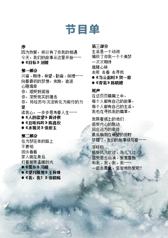 在这学期中,我们收获颇深,学到了许多知识,也感悟了许多道理,希望以后的我们能够继续砥砺前行,再接再厉!——2022级编创实验班 尹露