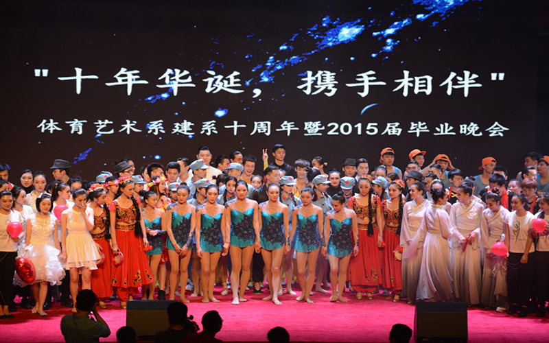 十年栉风沐雨,十年春华秋实。十年来,在学校领导的关心和指导下,在各部门、各兄弟院系的支持和帮助下,体育艺术系领导马鸿韬团结带领全体师生,始终以“博采艺术之长,办出体育特色”的理念为指引,追求卓越、艰苦奋斗、开拓进取、前赴后继,使艺术系办学规模和水平取得了长足的进步。晚会上以《红色追忆》、《春之祭》、《中国范》、《大漠之花》为代表的四个精品节目表演,既集中展示了建系十年来所取得的艺术水准,也展现出全系师生的勃勃生机和对未来发展的信心。晚会在《天之大》的歌声中进入尾声,整个体育馆内萦绕着轻柔的乐声,既表现了体大学子的恋恋不舍的母校情怀,也以“天高任鸟飞”为意,祝福毕业生前程似锦,祝愿体育艺术系在未来的发展道路上再接再厉,取得更加辉煌的成绩。(文/刘曦 )