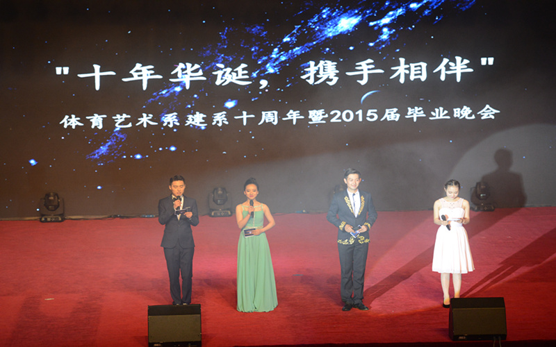 2015515日晚1900,十年华诞,携手相伴,体育艺术系建系十周年暨2015届毕业晚会在6776永利集团体育馆圆满落下帷幕,全系师生以文艺汇演的形式汇报建系十周年建设成果并欢送2015届毕业生。党委书记、董事长杨桦,党委副书记、副董事长池建,党委副书记兼纪委书记程建平,副董事长刘大庆,副董事长夏伦好,副董事长胡扬,副董事长高峰,工会主席徐星等学校领导出席晚会,学校各部门、单位负责人,各院系领导以及体育艺术系2015届毕业生家属代表,毕业员工代表也光临晚会现场。