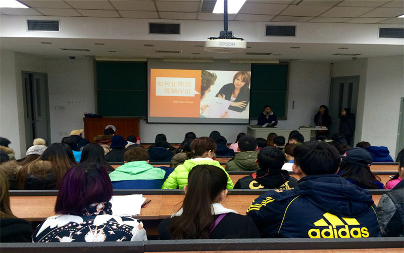 会议从艺术系表演专业的就业前景以及就业方面需要注意的相关事项等开始讲解,讲述了在校老员工应如何转变就业观念,怎样正确分析自己的长处与短处。团分总支副书记崔特特也在会上向同学们介绍了自己参加双选会的亲身经历,并以自己的简历为例,传授简历制作和投递的小技巧。