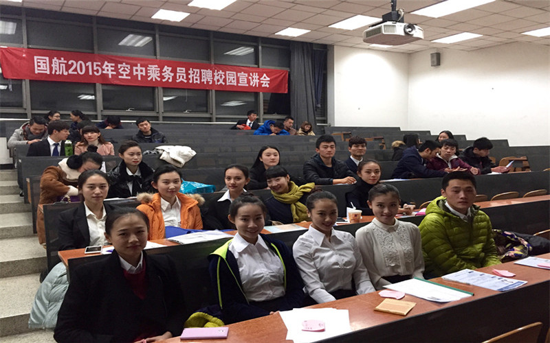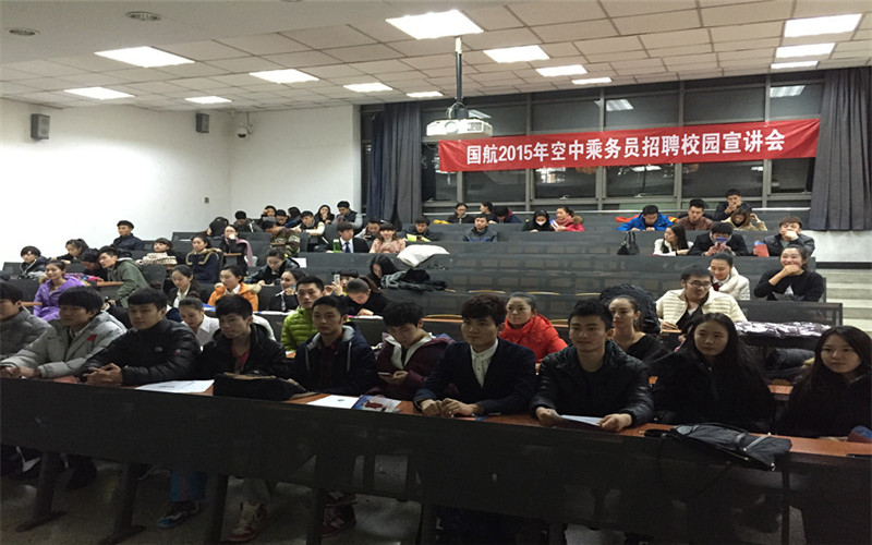 2014年12月4日晚18:30,中国国际航空股份有限公司来到公司招募空中乘务员,于教学楼214教室召开招募宣讲会,并进行了第一轮面试的筛选。艺术系2011级员工在领导的重视和辅导员张丽芬老师的组织下,携带简历参加。